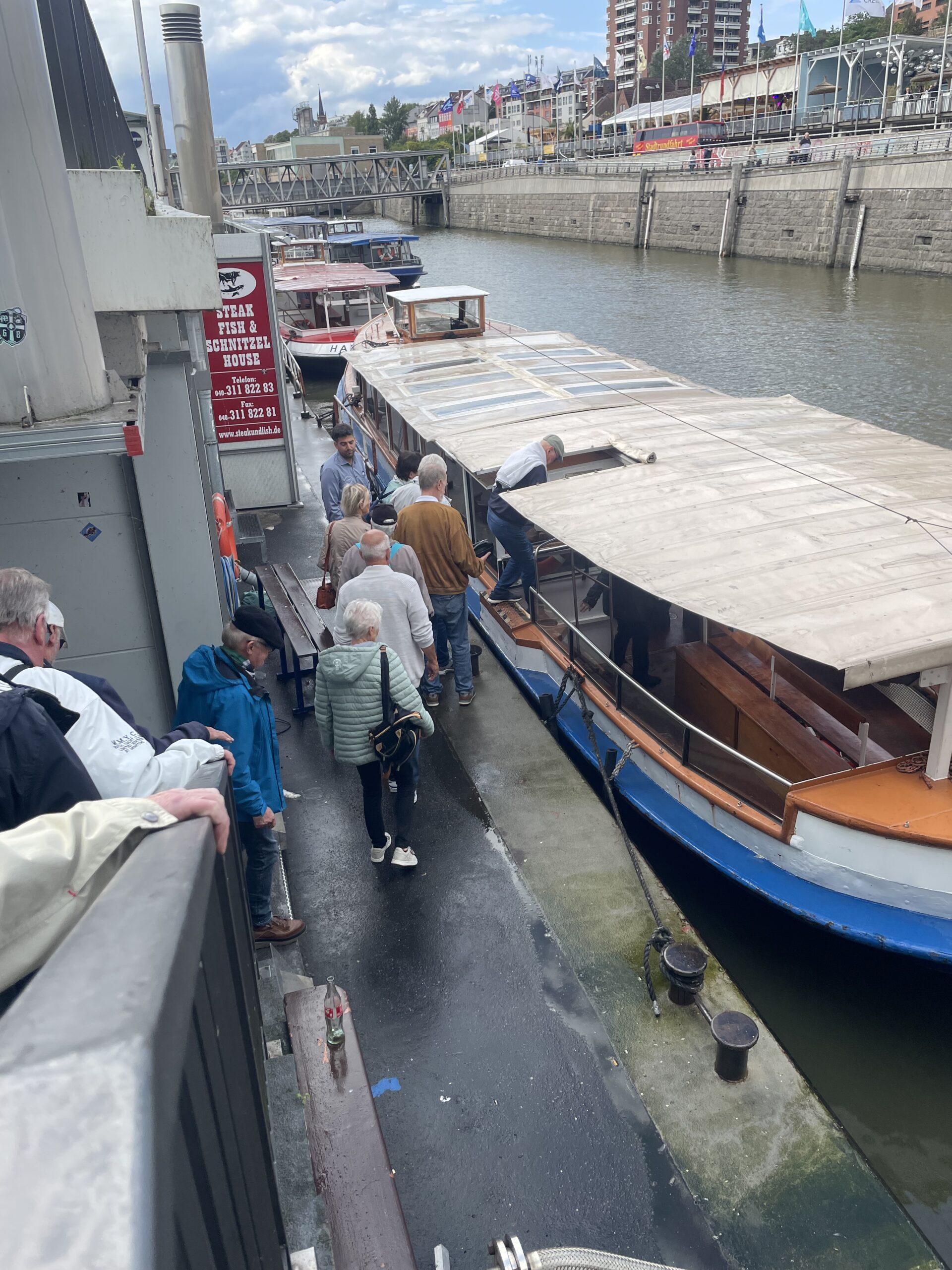 Wir fuhren dann mit dem Bus durch Hamburg mit einem kleinen ‘Seesighting Trip’ direkt bis zu den Landungsbrücken. Vorab hatte ich mit Hilfe unseres Busfahrers die ‘Grosse Barkassenfahrt’ organisiert. Dank an Wilfried! So machten wir dann eine sehr interessante Schifffahrt durch den Hamburger Hafen mit seinen vielen Schleusen und Kanälen. Alle waren begeistert von der Fahrt und von den lockeren Sprüchen des Barkassenführers.