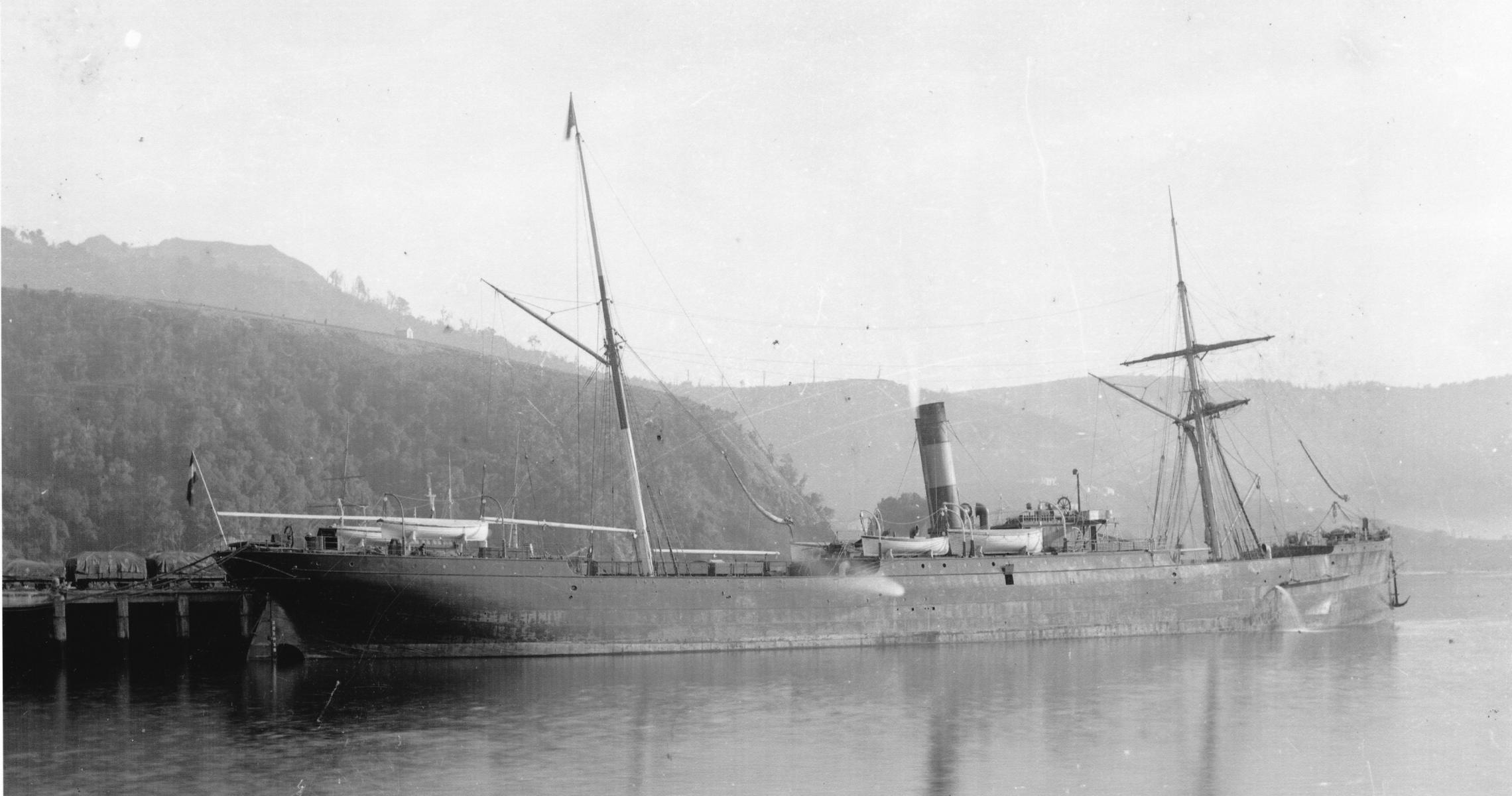 Das Foto zeigt die "Sorrento", Reederei Rob. M. Sloman, Hamburg. Der Dampfer und seine drei Schwesterschiffe erhielten erstmals Ladekühlräume eingebaut. Foto: Alexander Turnbull Library, Wellington, Neuseeland.